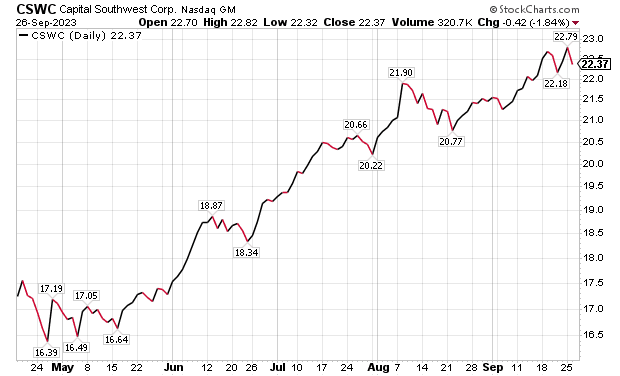 Perry described CSWC as “thriving” in its financing niche. Capital Southwest became a recommendation in the Extreme Income Portfolio of Perry’s April 2023 issue of the Cash Machine investment newsletter. The BDC specializes in lead financing of $5 to $70 million that regularly has the company as an equity partner with an active network of co-investors.