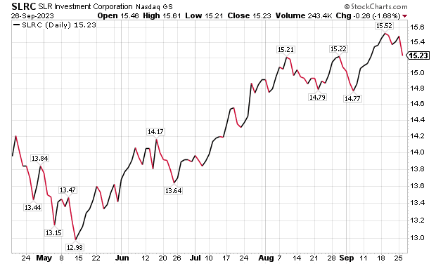 The BDC sector continues to see rising demand for quick and easy loans from small- to midsized privately owned businesses. The shakeout in the regional bank sector earlier this year spurred tighter lending standards at the banks, thereby diverting loan customers to the BDC market, Perry wrote. SLRC provides a diversified array of commercial finance solutions, encompassing cash flow-lending, asset-based lending and specialty finance investment strategies. Its main target is U.S. middle market businesses and intermediaries with debt financing solutions to fund working capital, acquisition, refinancing and growth capital requirements.
