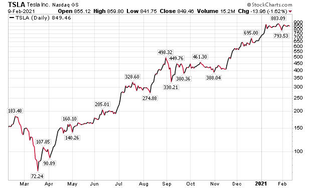 Despite Tesla’s towering 12-month P/E ratio of 171.13, compared to the domestic automotive industry’s 16.94, the company has been attracting new shareholders willing to pay the lofty price. Tesla’s Chief Executive Officer Elon Musk gained major news coverage on Feb. 8 when he announced company is investing $1.5 billion in Bitcoin and will accept the cryptocurrency as payment for its vehicles.