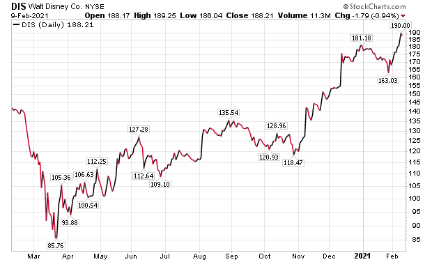 She predicted a loss of 55 cents per share in Disney’s first quarter of 2021 but a gain of $1.06 per share for full-year 2021. Her “buy” rating of the stock remains intact, aided by “robust” Disney+, Hulu and ESPN+ streaming services.