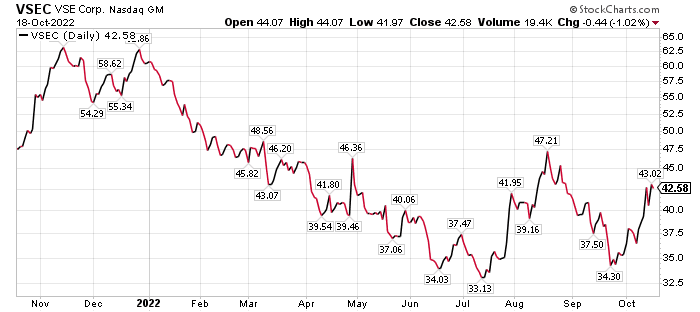 “In our view, the main risk for VSE shares is that the company does not renew its Navy foreign military sales ship transfer contract, which represented 13% of 2021 revenue and is now up for bid,” Wiliam Blair wrote. “While our $43 per share bear-case valuation assumes that VSE does not renew this contract, our base case assumes a successful extension given that VSE has held the contract since 1995 and has renewed it many times.”