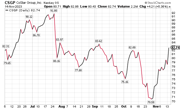 “CoStar profits from the largest asset class in the world — real estate — through its ownership of Apartments.com and Homes.com, both of which dominate the competition such as Zillow,” Skousen wrote to his Forecasts & Strategies subscribers.