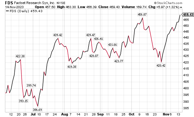 FactSet offers software and a screening process to analyze and manage financial data for individual stocks and funds in competition with Bloomberg and Yahoo, among others, said Skousen, who wrote to his Forecasts & Strategies subscribers that he was impressed the company has had 24 years of expanding earnings growth.