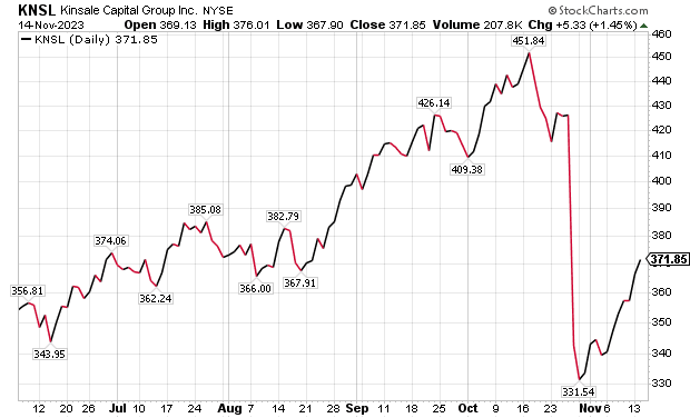 Kinsale Capital Group (NYSE: KNSL), of Richmond, Virginia, is a specialty insurance company focused using technology to provide excess and surplus lines (E&S) coverage in the United States. Founded in 2009, Kinsale Capital Group is expanding largely by using its underwriting expertise to write coverages for hard-to-place small and mid-sized business risks.