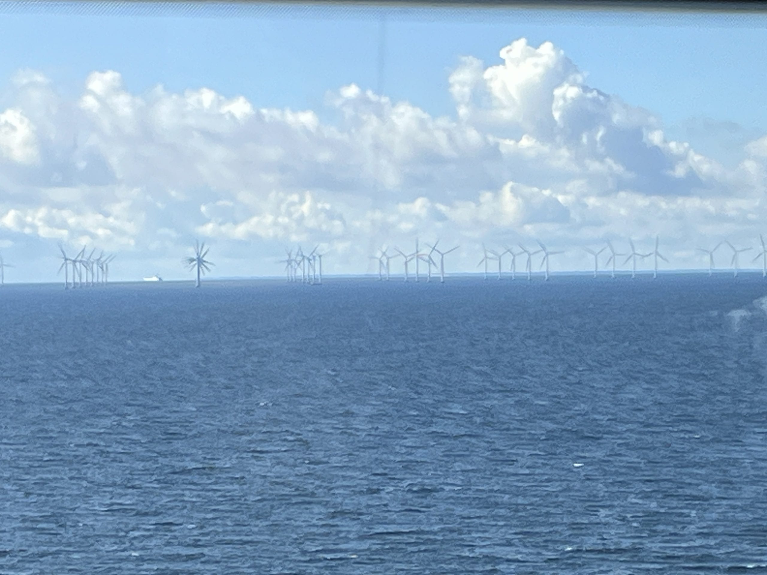Wind turbines are shown in the waters between Denmark and Sweden. Photo by Paul Dykewicz