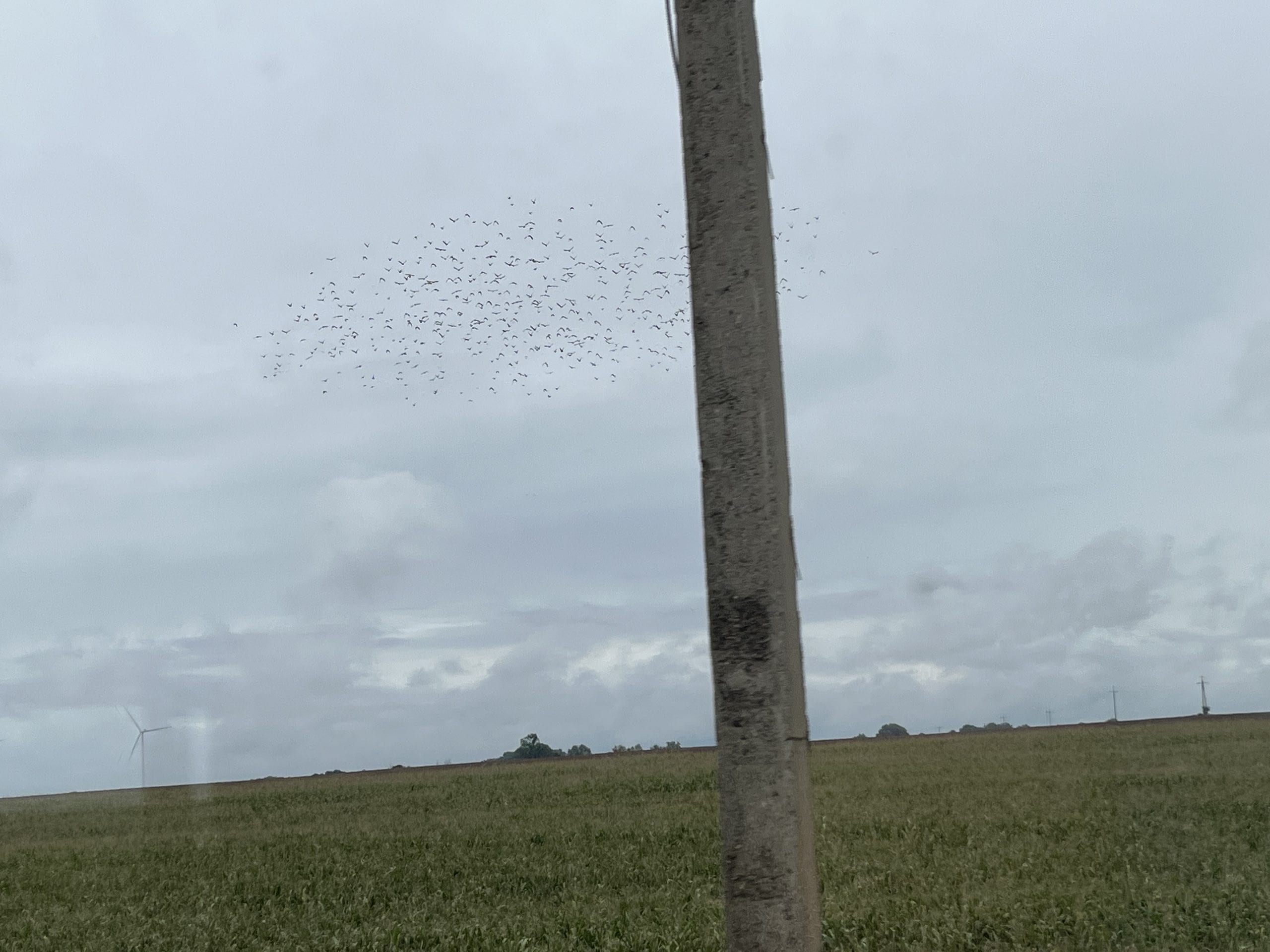 A large flock of birds are shown near wind turbines that are known to be hazardous to their health. Photo by Paul Dykewicz