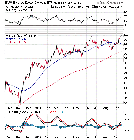All DVY’s holdings have at least a 5-year record of paying dividends. DVY invests its $17.5 billion in total assets in roughly 100 stocks based on dividend yield from a broad market-cap universe.