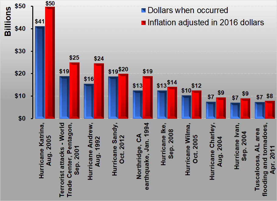 To put Hurricane Harvey into historical context, if the 1900 Galveston hurricane occurred in 2016, it would have caused $41.7 billion in insured losses, based on adjustments for inflation, growth and value of coastal properties and increases in property insurance coverage, according to Karen Clark and Company.