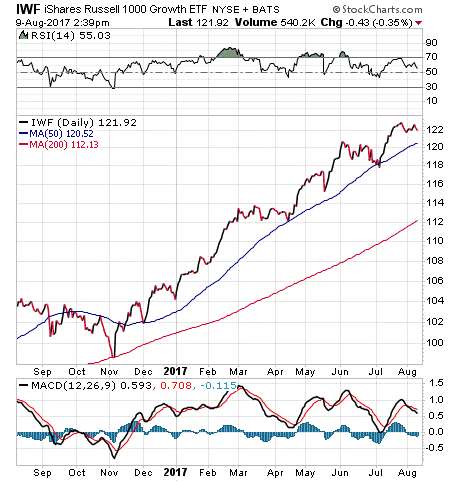 With $36.15 billion in total assets under management and average daily trading volume of $184.77 million, IWF is a massive fund with supreme liquidity.