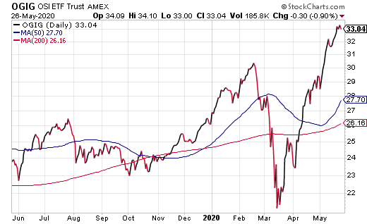 OGIG is among the market-leading technology investments that have beaten the performance of the major U.S. stock indexes so far this year, as well as gold, silver and oil. The fund has risen 5.5% more than the 21.06% gain of the technology category thus far in 2020.