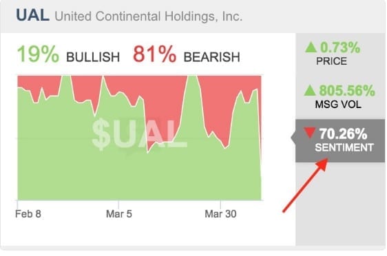 According to a chart from StockTwits, 81% of sentiment on United Airlines is currently bearish.