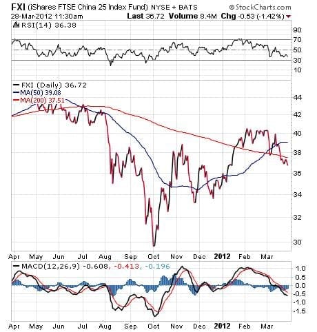 The result of these negative metrics was a sizeable decline of 4.7% last week in the iShares FTSE China 25 Index (FXI).