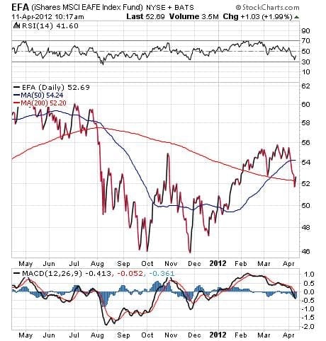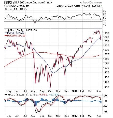 In addition to the poor reading on the March employment front, trouble in Europe is really starting to rear its ugly head. Renewed fears heated up last week with the poor showing in the Spanish bond auction that saw the country sell only 2.3 billion euros worth of 4-8 year debt at yields sharply higher than previous auctions. Spanish bond yields now are back above 5.5%, and that situation is not good news for that country’s economy, or for the European Union.