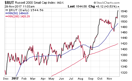 The stock market is on fire. On Tuesday, stocks surged about 1% nearly across the board, with the Dow, S&P 500 and Russell 2000 indices each vaulting to yet another respective all-time high.
