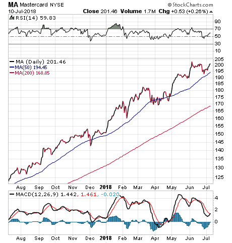 The company has achieved a 65.22 percent return during the past 12 months and still is climbing. Mastercard also has jumped 33.23 percent since the start of 2018 and 18.11 percent during the past three months, significantly beating the performance of the credit card services sector and trouncing the overall market rise during those time periods.