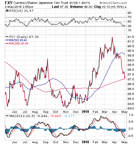 The fund, launched in February 2007, has a 30-day average daily trading volume of 222,787 shares. In addition, FXY has a market value of roughly $170.2 million and an expense ratio of 0.40%.