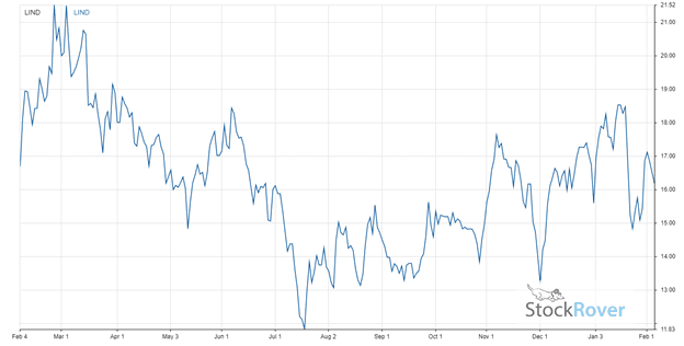 LIND has seen growth by 9.3% over the past 12 months, graphed below alongside a 50-day moving average.