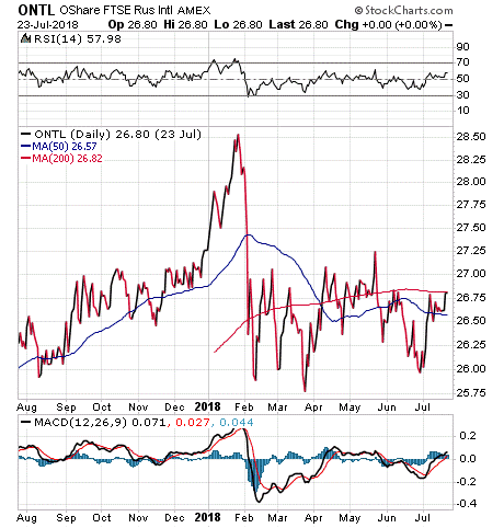 This week’s featured fund, the O’Shares FTSE Russell International Quality Dividend ETF (ONTL), reaches out to international companies in pursuit of dividend income.