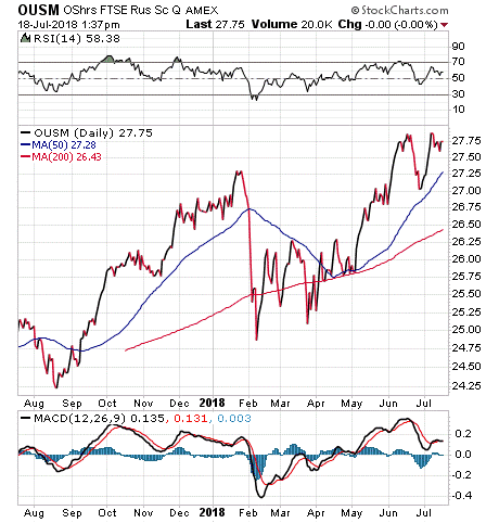 There are several other advantages to investing in OUSM. Even though it has just $141.58 million in assets under management, OUSM is quite diversified at 223 holdings. Secondly, due to the nature of small-cap equities, investors may not be familiar or aware of many of OUSM’s holdings and would have to spend the time and energy on research if they wished to invest in them individually. OUSM cuts out all that hassle and conveniently offers exposure to high-quality small-caps in one place.