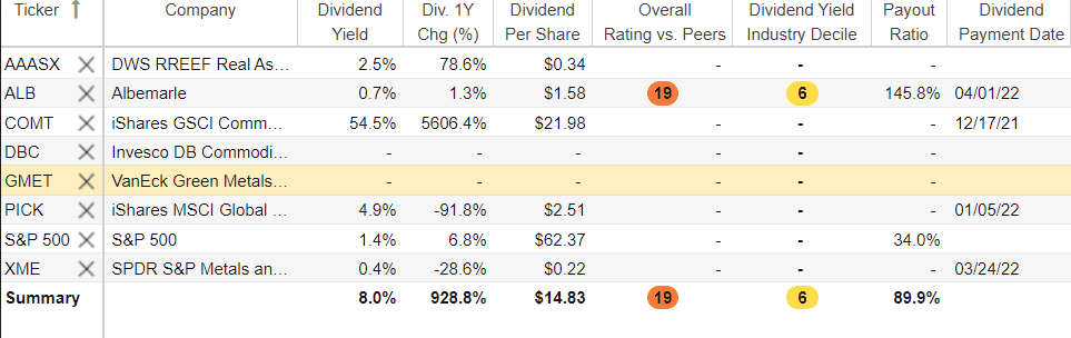 The ETF has $28.5 million in total net assets and offers dividend income, too. Key selling points for the ETF include the fact that certain metals are critical to energy transition. Its holdings offer comprehensive global exposure, and demand for “green” metals is outstripping supply.