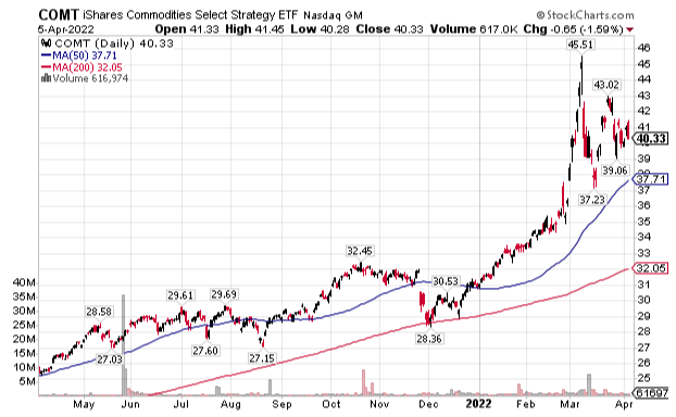 COMT has pulled back lately by dipping 0.42% in the past week and 4.02% in the last month, but it is up 30.60% so far in 2022 and 60.34% in the past 12 months.