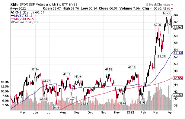 “If you want targeted sector exposure to U.S. companies engaged in the extraction of metals and other natural resources, then you need XME,” said Jim Woods, editor of Successful Investing, Intelligence Report and Bullseye Stock Trader.