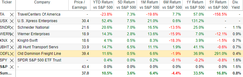 “Potential problems for KNX and other companies in the sector are more competition from freight rail, high wages and shortages of qualified drivers,” Carlson said. “Given the potential headwinds, it is best to invest in the sector with a quality company trading at a below-average valuations.”