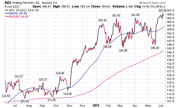 Competition from larger vendors also poses a challenge from companies such as Texas Instruments Inc. (NASDAQ:TXN), which have lower-cost production facilities. However, that challenge is not unique to Analog Devices, since other fast-growing technology companies such as Marvell also incur competition from bigger and better-established rivals.