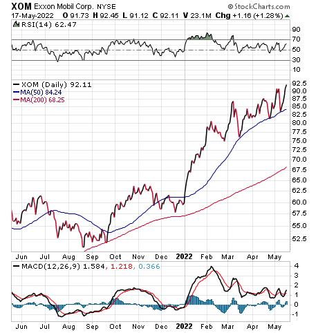 XOM has continued to shine amid the market’s retreat. The company’s share price has soared 8.73% during the past week, 4.55% in the last month, 17.20% in the past three months, 51.51% thus far in 2022 and 55.44% for the last year.