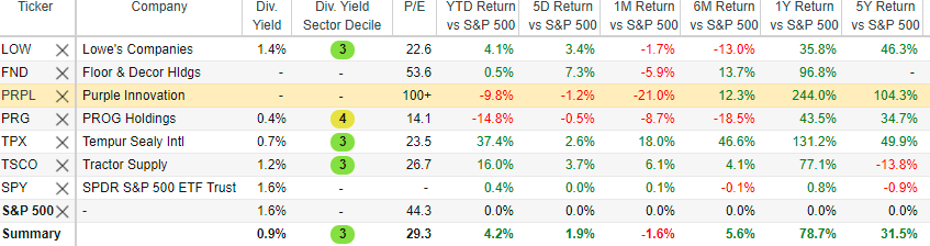 “We don’t buy new ones very often, and once companies like TPX and PRPL book a sale, they can’t come back to the same consumer for several years,” Kramer said. “I’d look at relatively consumable décor categories instead.”
