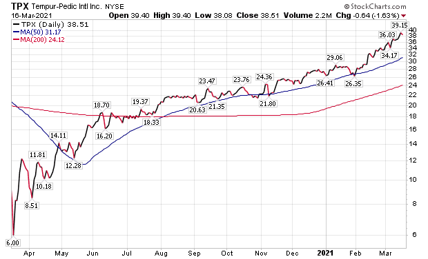 Six Retail Technology Stocks to Buy: Tempur Sealy (TPX)