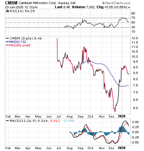 Another very small recent IPO in the telecom space is Cambium Networks Corporation (NASDAQ:CMBM). Cambium went public in June 2019 at $12 and now trades around $8.50, having managed a 40%+ bounce in the past month.