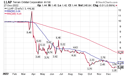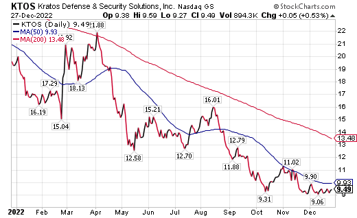 • Kratos Defense only has a $1 million market capitalization. Like other small-cap stocks, the company has been hit hard during the “horrific market” of 2022.