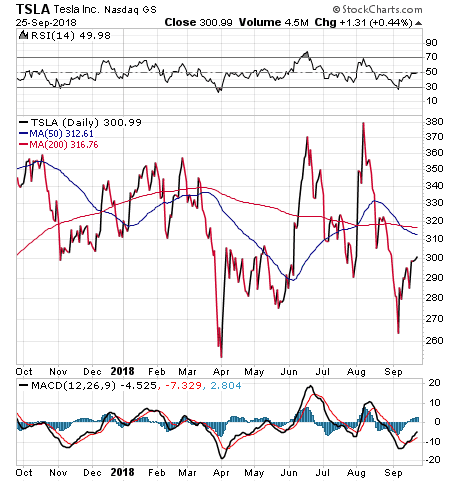 Goldman Sachs issued a research note on Tesla on Sept. 24 that found Tesla’s third-quarter 2018 new car deliveries will “slightly” exceed the consensus estimates of analysts who cover the company. However, Tesla faces growing competition in the years ahead that keeps Goldman’s price target for the company at $210 a share, well below its closing price of $300.99 a share on Sept. 25.