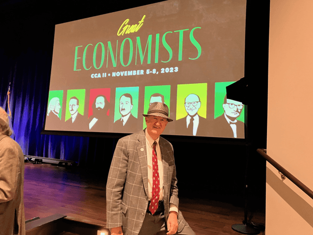 At the end of Wapshott’s lecture, I stood up and objected to his thesis that Friedman is ignored today. I noted that Friedman’s book, “Capitalism and Freedom” is still in all the bookstores… His school choice initiative (EdChoice) is gaining strength in most states… Since 2002, the Cato Institute has awarded the Milton Friedman Prize for Advancing Liberty every two years (valued at $250,000)… There’s still the Becker Friedman Institute at University of Chicago… Many people still celebrate his birthday every year on July 31. And he’s highlighted in my economics books.