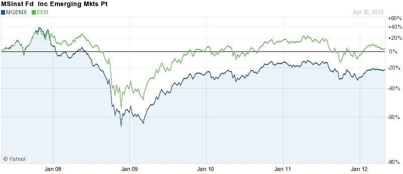 This is not a critique of the Morgan Stanley team, per se. I was unable to find a single portfolio manager who actually outperformed the MSCI Emerging Markets Index over the past five years. And that includes emerging market specialists like Templeton.