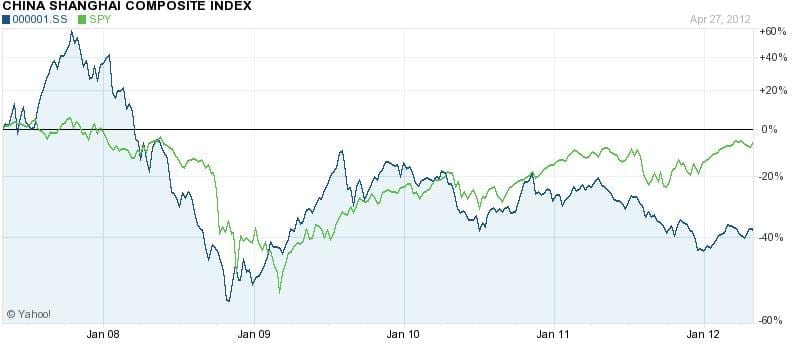 Truth be told, stock market investors have had their heads handed to them in China. The Chinese stock market today stands 40% below where it was five years ago before the onset of the global financial crisis. In contrast, the U.S. S&P has been essentially flat. That’s why your email inbox is no longer full of newsletters hawking the “China Miracle.”