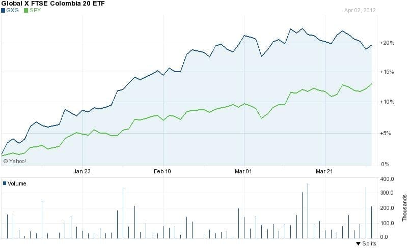 The Global X FTSE Colombia 20 ETF (GXG) is up 18.96% this year.