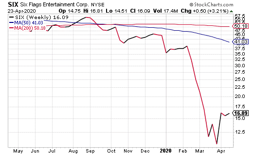 The potential was shown by Six Flags Entertainment Corporation (NYSE: SIX) jumping 4.7% on Friday, April 17, when its share price closed at $15.59. This company pays a quarterly dividend and has a current dividend yield of 6.18%. In 2019, its most recent fiscal year, SIX reported earnings per share (EPS) of $2.24. Six Flags has a modest price-to-earnings ratio of 7.36 and an expected P/E growth of 14.22.