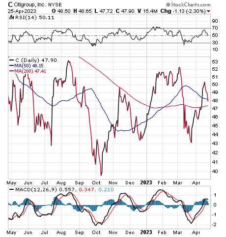 On the commercial banking side of Citigroup’s business, deposit growth is slowing but its retail deposits are gaining better than the industry, BofA noted. Wealthy customers are moving money into certificates of deposit (CDs) and fixed income products, but the bank’s multi-product offerings are helping to limit attrition.