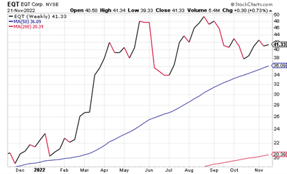 OXY, DVN and EQT all reported strong third-quarter earnings results. EQT also doubled its ’22-’23 share repurchase authorization to $2.0 billion and has repurchased $380 million in common stock since inception of the repurchase program, reducing its share count by approximately 13.5 million.