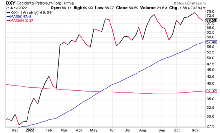 As of Monday afternoon, Nov. 21, shares of OXY traded at $69.54, which is not far from the high end of the company’s 52-week range. As is visible from the chart below, Occidental has had a very strong year thus far and has shown nothing but growth since June.