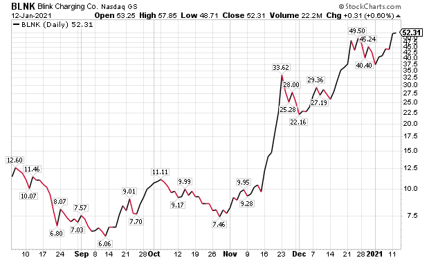 As for the fast-money aspect, BLNK has surged 2,200% in the past year, and some 350% during the past three months. Yet the company seems to be just getting revved up as the EV jolt is in its nascence. The stock’s share price jumped further after clean-energy advocate Joe Biden won the presidential election.