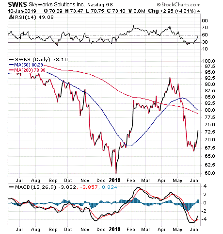 Tech companies that Kramer is watching for a possible recommendation include: Woburn, Massachusetts-based Skyworks Solutions (NASDAQ:SWKS), a manufacturer of semiconductors for radio frequency and mobile communications systems; Xilinx, Inc. (NASDAQ: XLNX), a San Jose, California, provider of intelligent computing; and Corning Inc. (NYSE:CLW), a Corning, New York, maker of glass displays for mobile phones.