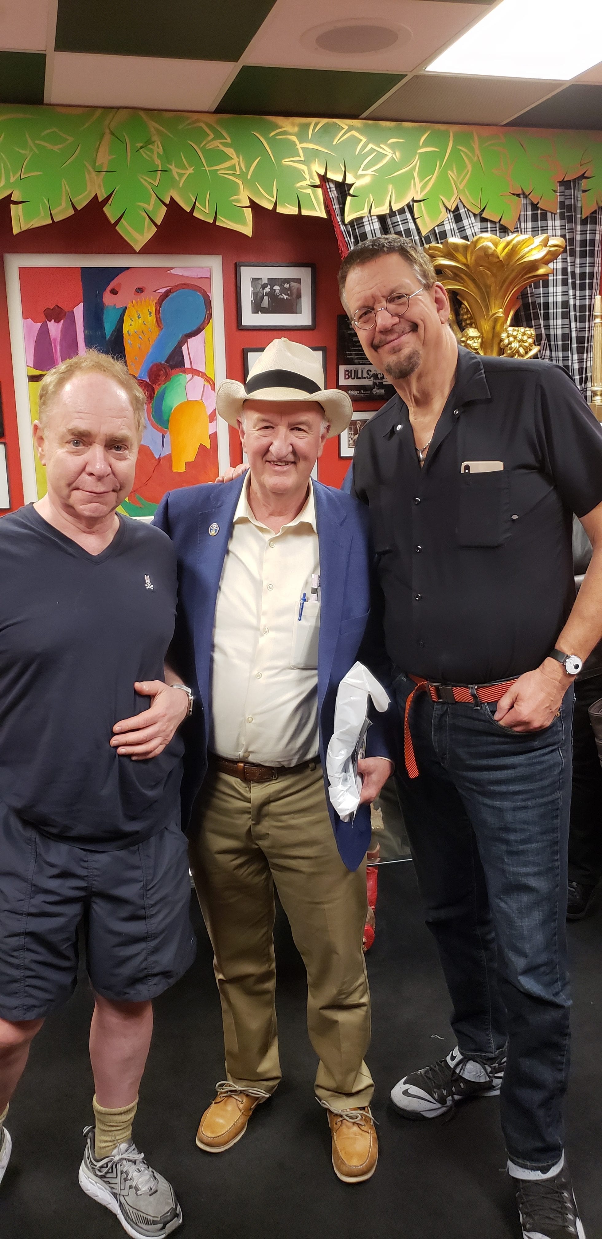 Your editor poses with Penn & Teller after their Vegas show in the “Red Monkey Room.”