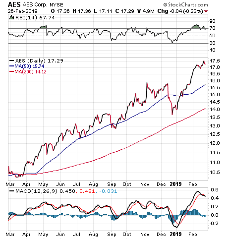 AES Corporation (NYSE:AES), a sustainable energy company in Arlington, Virginia, generates and distributes electrical power in 15 countries, as well as provides thermal and renewable generation facilities.