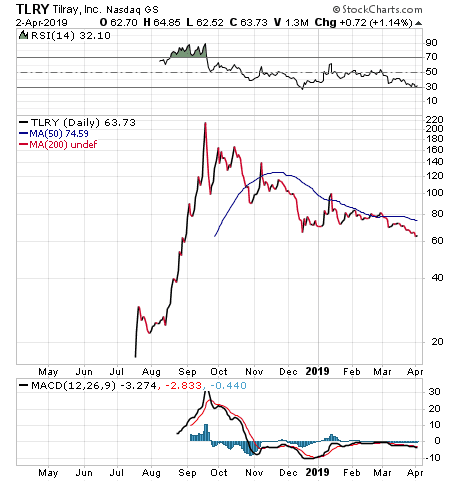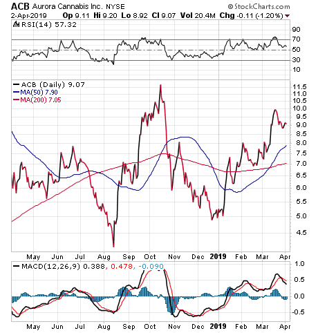 Tilray’s share price has been on a downward slide since last September, but the company has been aggressive in lining up partnerships. It also has a lower valuation compared to Canopy and Aurora.