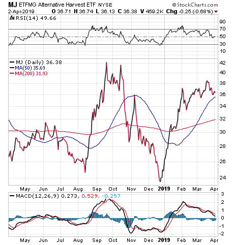 Jim Woods, who leads the Successful Investing, Intelligence Report and Bullseye Trader advisory services, recently recommended an exchange-traded fund (ETF) that has been soaring so far this year and letting investors gain exposure in a number of cannabis companies by making just a single investment in ETFMG Alternative Harvest ETF (NYSE:MJ). The ETF offers a pure play on cannabis, but he warned subscribers of his Successful Investing service that the sector tends to be “very volatile.”