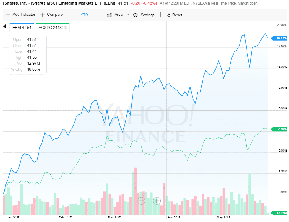 iShares MSCI Emerging Markets (EEM) versus the S&P 500